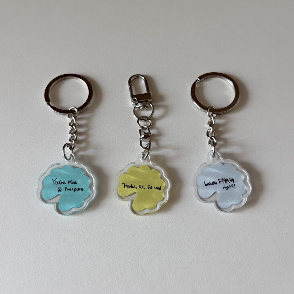 혹시 모를 상황을 대비해 여유분 키링을 주신 것도 센스 있는 부분이었고, 배송도 제작 다음날에 보내주셔서 빨리 받아볼 수 있어 좋았습니다:)