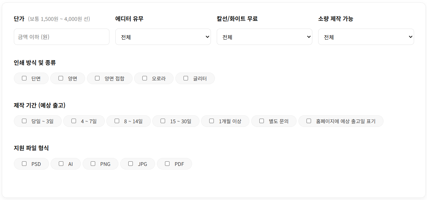 업체 비교 들어가면 단가 설정 필터가 있죠