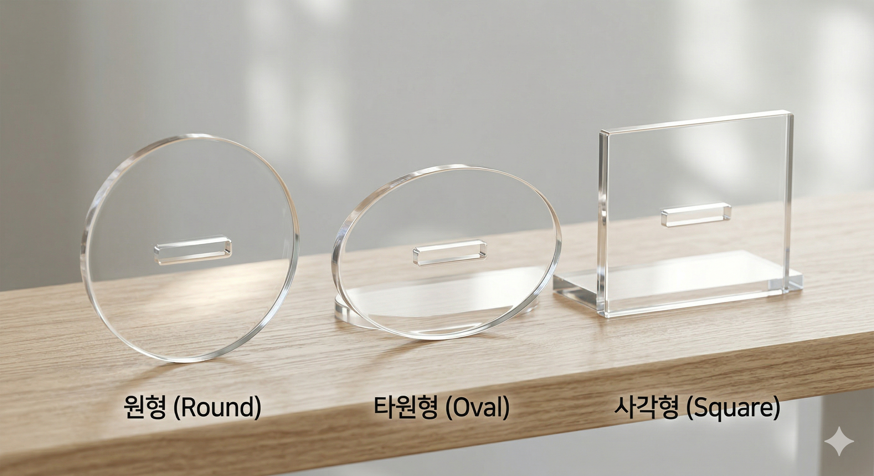 아크릴 스탠드의 경우 밑판은 필수입니다. 밑판이 있어야 아크릴을 세울 수 있기 때문이죠. 처음에 제작하려고 보면 "밑판 모양은 어떻게 골라야 할지" "밑판 인쇄는 가능한지", "사이즈는 어떻게 맞춰야 할지" 고민이 생기죠 그래서 이번 글에선 아크릴 스탠드 제작할 때 밑판 모양, 인쇄, 사이즈 등에 대해 간단히 설명을 해드리겠습니다. (초보자들을 위한 설명) 1. 밑판 모양밑판은 보통 아래 3가지 형태가 가장 많이 사용됩니다. 원형 , 타원형 , 사각형